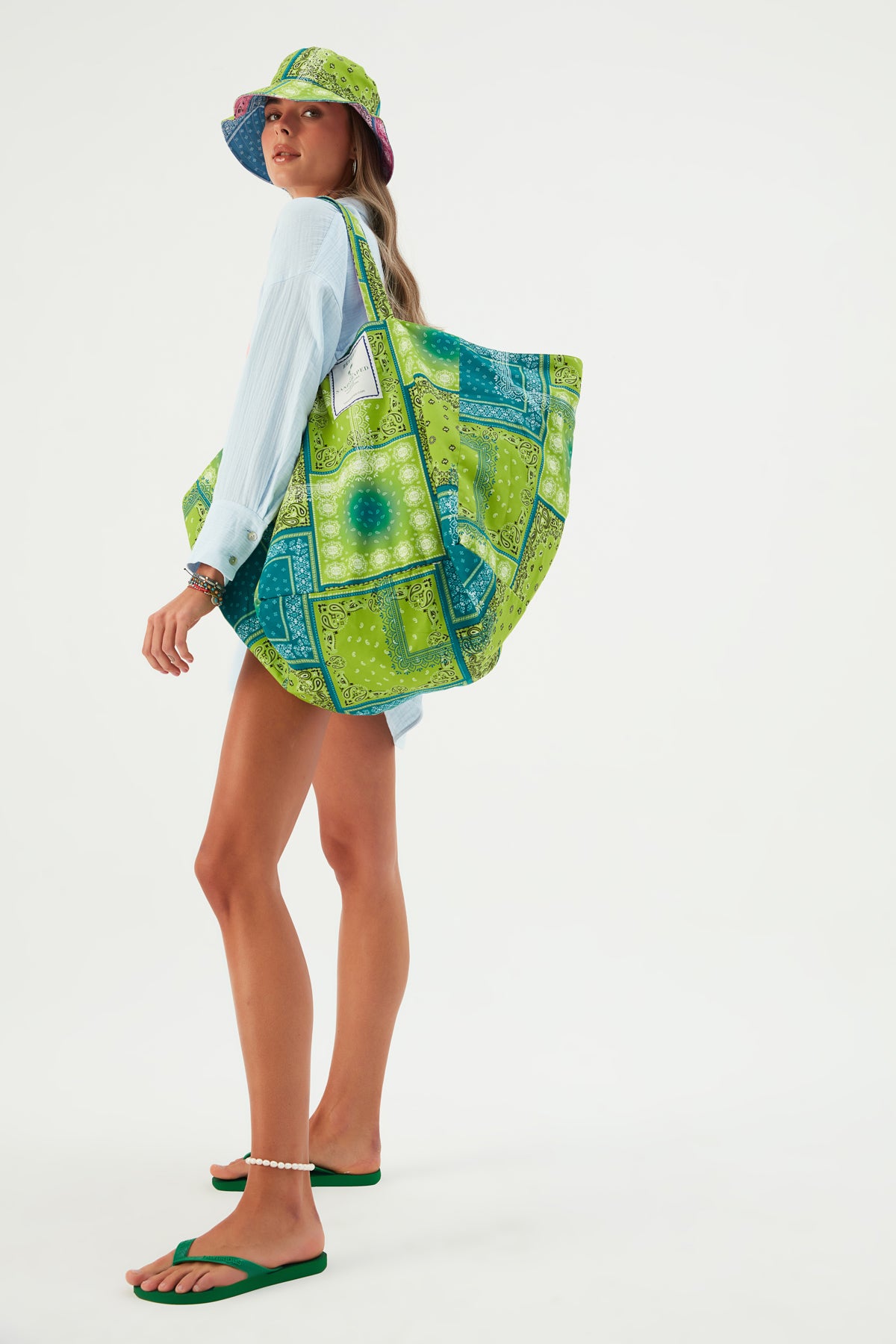Gargantuan Reversible Plaj Çantası Yeşil Pembe
