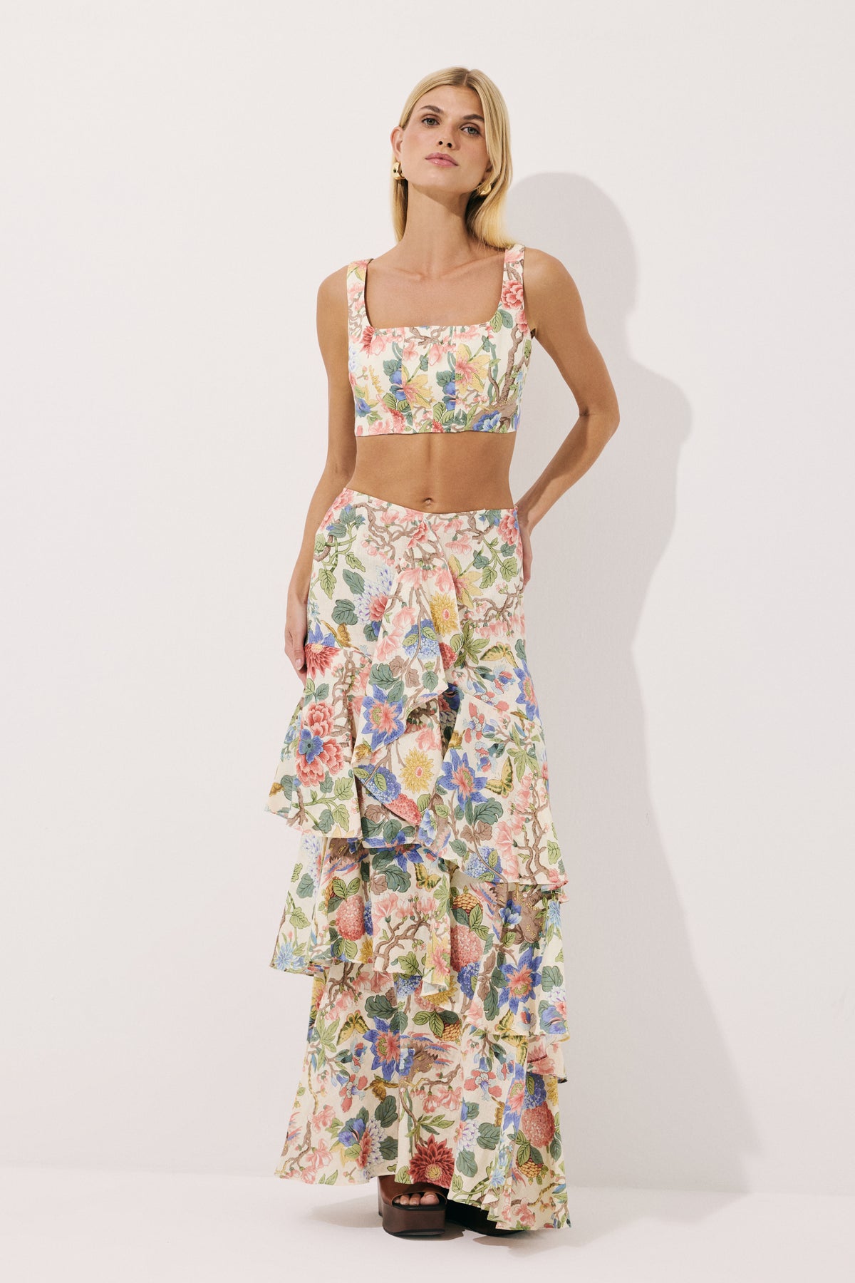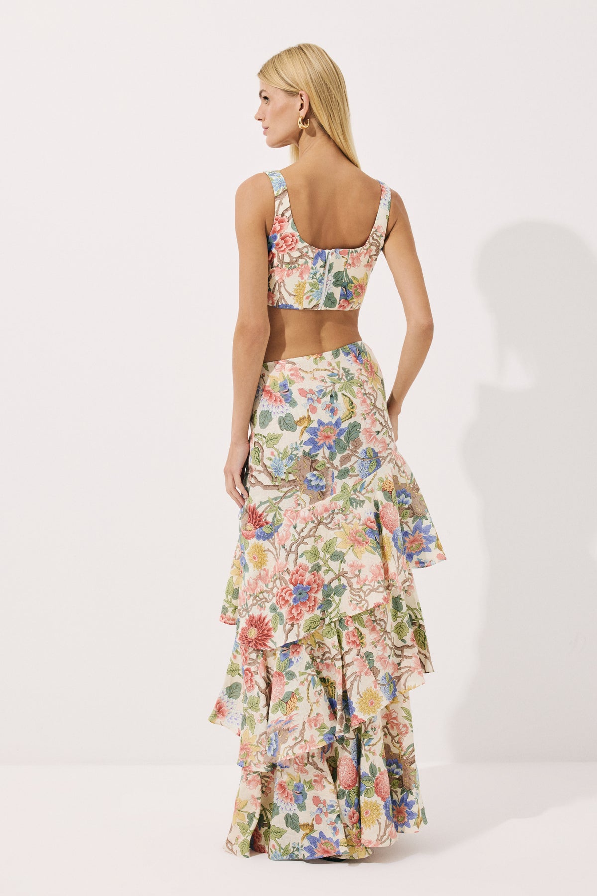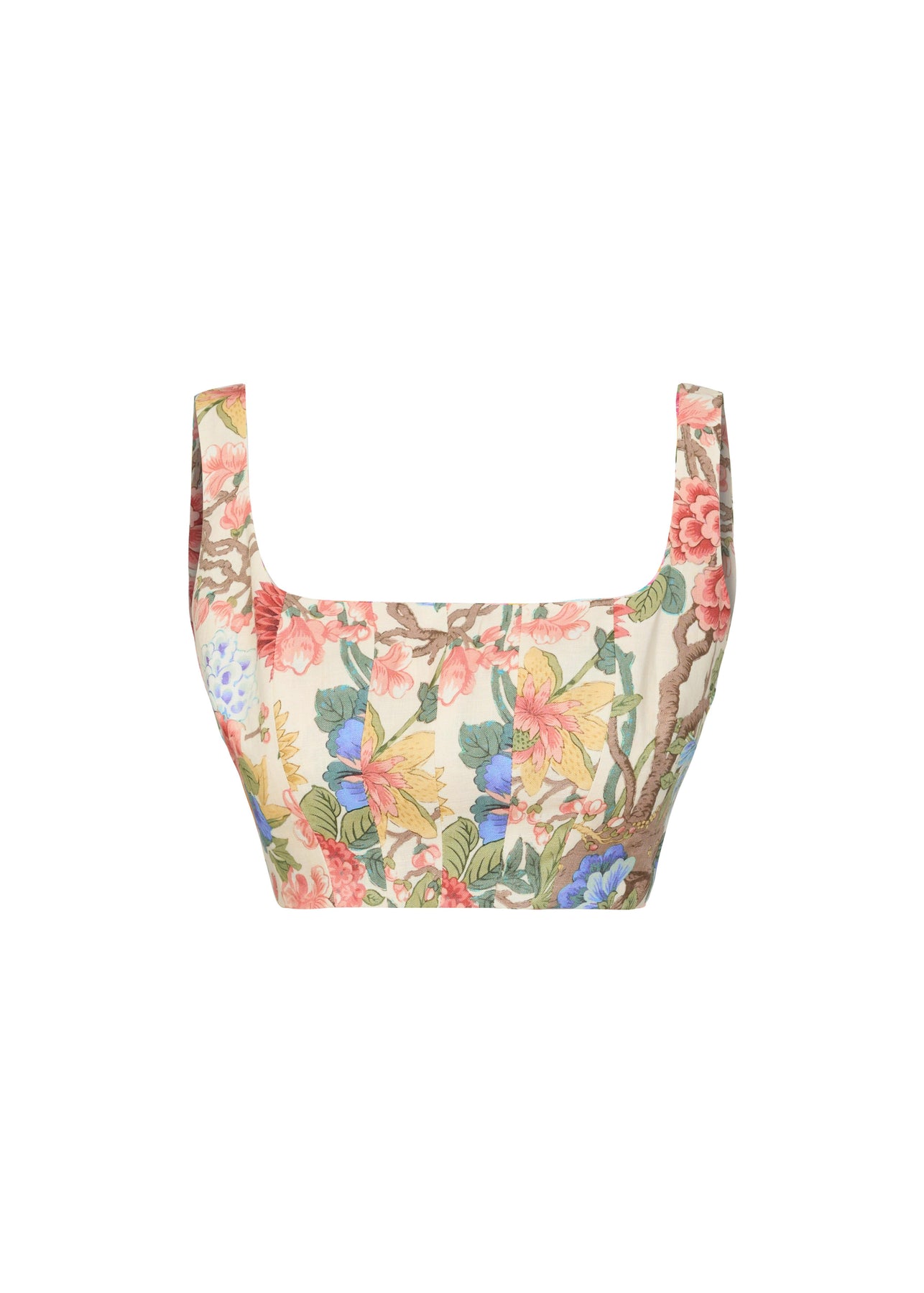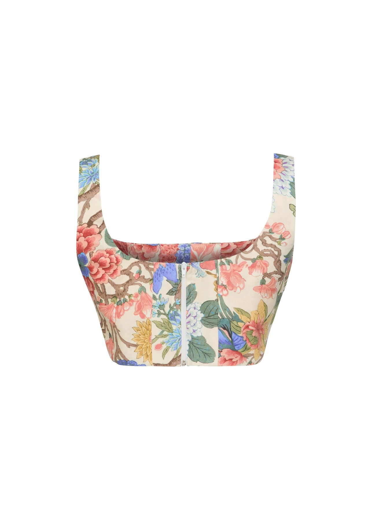 Keten Korsaj Stil Floral Baskılı Crop Top